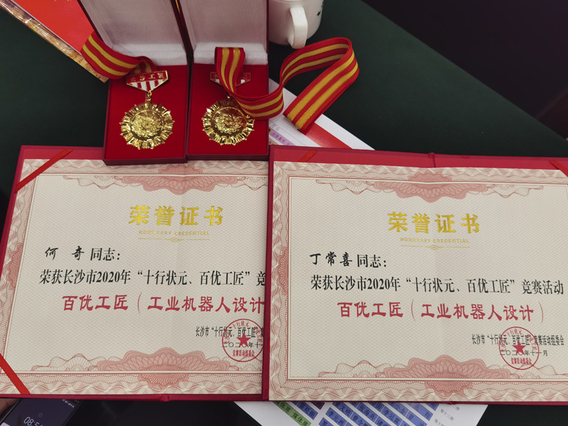 全宇工業(yè)作為長沙市工業(yè)機器人自動化企業(yè)代表參賽,何奇、丁常喜喜獲“工業(yè)機器人設(shè)計百優(yōu)工匠”,全宇工業(yè)也成為岳麓區(qū)唯一獲獎企業(yè)。